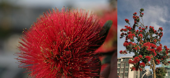 Kalėdos Naujoj Zelandijoj yra vasaros pradžioje, kai tik viskas pradeda žaliuoti ir žydėti, o labiausiai yra pastebimas Pōhutukawa medis. Pirmieji žiedai prasiskleidžia dar lapkritį, bet pats didžiausias žydėjimas būna per Kalėdas, dėl to Naujoj Zelandijoj jis dažniau vadinamas ne tikruoju vardu, o Kalėdiniu medžiu. Pernai atvažiavus į NZ prieš pat Naujuosius, pamačiau tik žiedų likučius, o šiemet išvydau juos visame gražume.